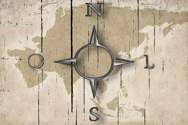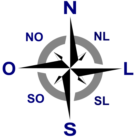 Son os catro puntos cardinais: Norte - ( eixe de rotación terrestre) e Leste - Oeste (saída - ocaso do sol). O Norte indica a ubicación do Polo Norte, mentres que o Sur fai o propio co Polo Sur. Por outra banda, o Leste ven a indicarnos a dirección por onde sae o sol, namentras o Oeste indicaranos por onde se oculta o astro rei.